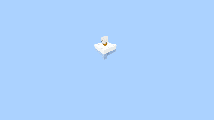 Next up is the icy island. Here you will find a polar bear and one block of regular ice, which can be used to create an infinite water source.