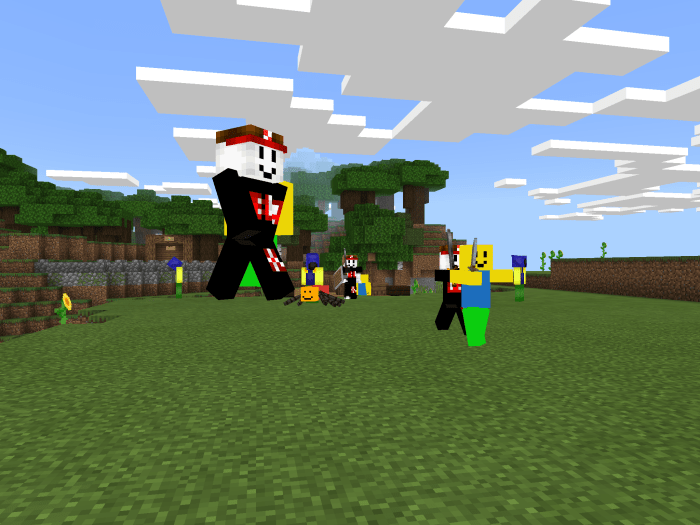 Unusual and incredibly powerful mobs from the game Roblox have taken over the map titled Roblox Noob Defense in Minecraft. Little is known about them, but one of the few details is that they refer to themselves as noobs. Their purpose for entering Minecraft remains a mystery, and their intentions are clearly not friendly. We also know that their arrival was completely unexpected and considered an error. Regardless, there’s no turning back now, so prepare your gear and get ready to battle these new mobs! The armies of noobs will continuously spawn, depending on the game mode. Survive long enough, and you will face the noob boss. Its strength and appearance vary based on the game mode.