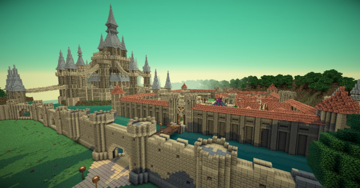 Welcome to the map titled “Sanjana’s Castle” in Minecraft! This majestic castle features intricate structures, a vast courtyard, and numerous additional buildings with thematic designs.