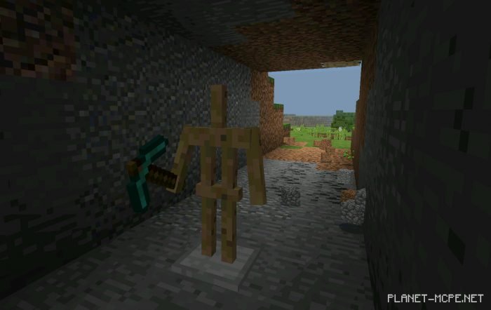 Place an armor stand, equip it with a diamond pickaxe, and toss some coal into it; the robot will slowly begin to gather resources for you in Minecraft Pocket Edition.
