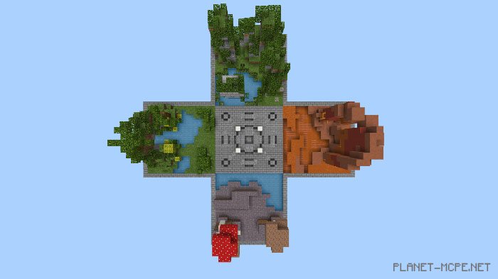 The mapSG 4C: Biomes (4 segments: Biomes)” is a segmented map where the SG team and their collaborators craft amazing creations within specific sections of Minecraft PE. With dedication, you could soon apply to join as a partner with SkyGames. This map marks the initial release, featuring: a jungle biome, a forest biome, a mushroom biome, and a mesa biome!