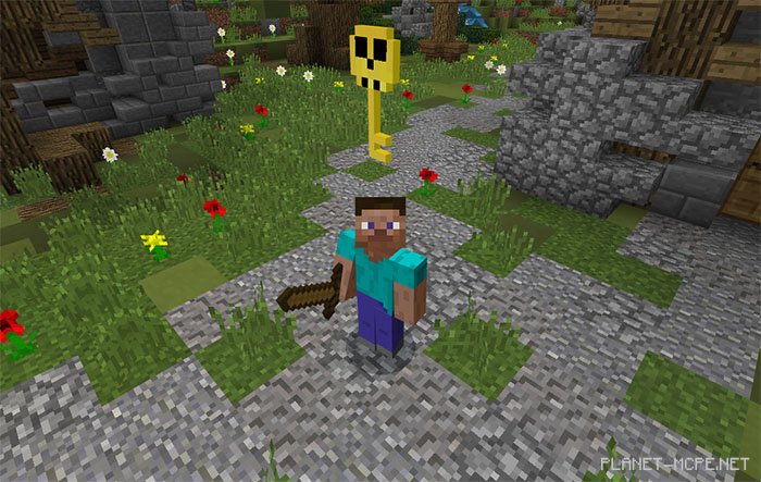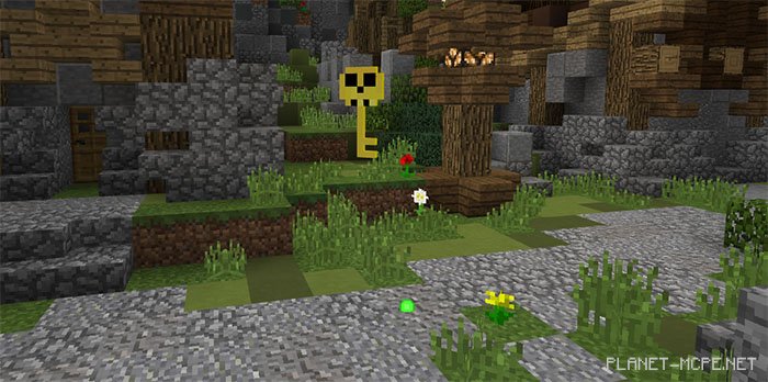 The map «SG FFA Run (Battle for the Throne)» offers a fast-paced and exciting experience where players of Minecraft PE enter an arena to compete for the key to the throne! Upon your arrival in the arena, you will have 5 seconds of invincibility, after which it’s every player for themselves. Rush to grab the key marked by a beacon or check your interface to see who currently holds it. If the key drops on the ground, pick it up and dash towards the door where you spawned!