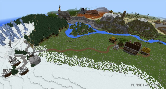 The diverse landscapes crafted by Ekza make this map a fantastic journey through various biomes found in Minecraft Pocket Edition.
