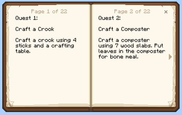 The map features several mods that are essential for gameplay. One of these is the quest book, which enables you to progress through your journey in Minecraft Bedrock.
