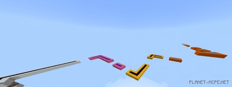 Welcome to the whimsical realm of Sky Running on the mapSky Run (Небесный бег)“, where your mission is to reach the end while navigating through a variety of obstacles floating in zero gravity within Minecraft Pocket Edition. I hope you can make it to the finish line, good luck!