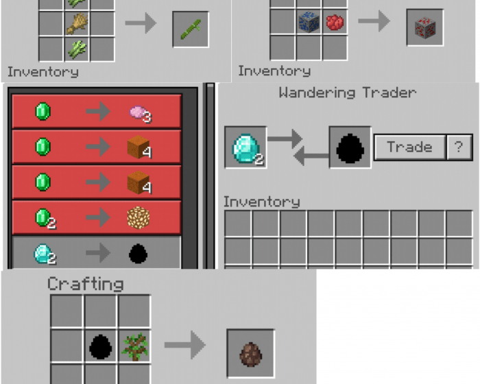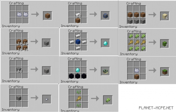 With the help of additional mods, the creators of maps have managed to introduce new crafting recipes and blocks. Since there is hardly anything on the tiny island, players need to find alternative ways to gather food, materials, and blocks. You can craft diamonds and other items shown in the image below. Additionally, the recipe for crafting mud blocks has been modified.