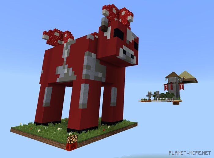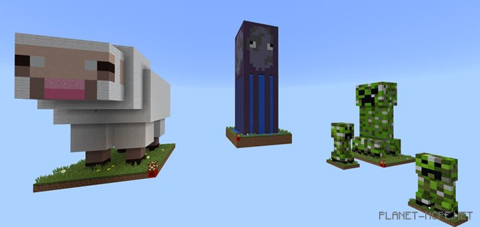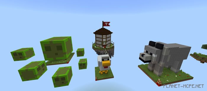 SkyMobs (Heavenly Mobs) is a celestial map where your mission is to complete a monument by restoring nine blocks and placing them on the structure located near your home island. Your adventure in Minecraft PE takes place high above, and it will be more challenging than it appears. Survive against various monsters while trying to collect all the monument blocks and position them correctly.