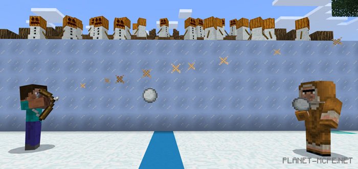 A small yet highly entertaining mini-game on the map titled “Snowball Brawl” features a battle arena in the world of Minecraft Pocket Edition against another player. This mini-game is designed as a “fight to the death,” meaning the game continues until one of you loses and respawns. Additionally, it utilizes command blocks from the MCPE world to provide players with various clever tools to aid them in combat, ranging from spawning snow walls to slowing down their opponent.