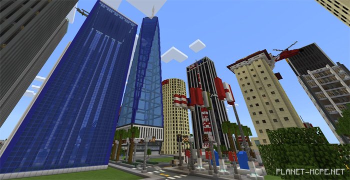 We are excited to present the inaugural release of the mapSnyder City,” which has been in development for two months. This city, inspired by American architecture, still requires some work before its completion in Minecraft Pocket Edition. The city features several skyscrapers, residential buildings, and various vehicles including trains, trucks, and airplanes, along with many other elements. An update for this version of the map will be released soon.