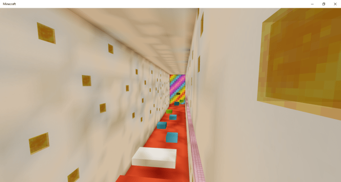 Experience the parkour levels in Minecraft at lightning speed on the map titled “Speedrun Parkour ULTIMATE! (Ultimate Speedrun Parkour)“. Gather your friends, and the game will challenge you one after another. The lobby contains the rules and explanations for all blocks and effects. After completing a level, regardless of winning or losing, players will be automatically teleported to the spectator room. While navigating through the obstacle course, you’ll spot a golden ring. You can reach it using regular dynamite from Minecraft. At the end, there is a rainbow wall, before which awaits a challenging emerald strip. Complete it as quickly as possible, and most importantly—stay alive.