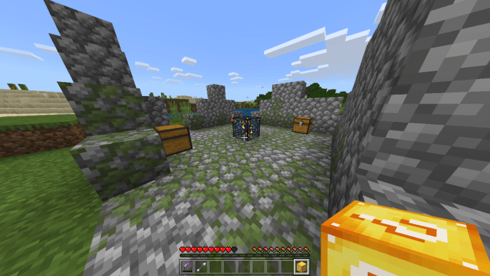 When breaking a lucky block, you might encounter these items: These are large creepers: Random spawners: These are random blocks found in fortresses: In mountainous biomes of Minecraft Bedrock.
