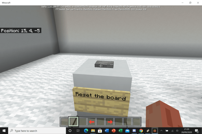 To clear the playing field in Minecraft, simply press the “reset board” button.