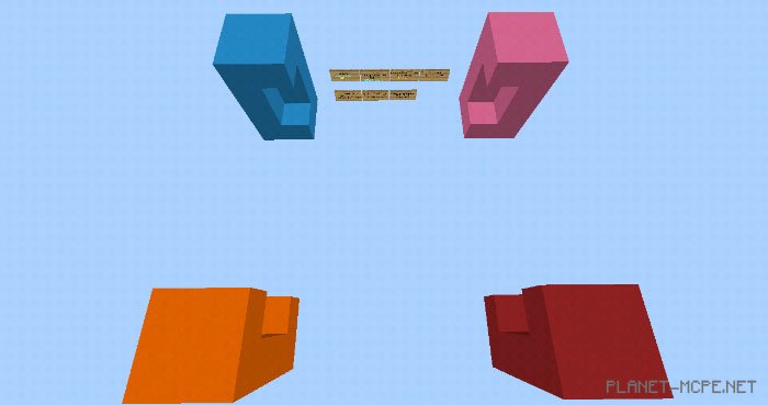 Map “The Four Pillars” is a multiplayer PvP mini-game designed for up to four players in Minecraft PE. Players select their team by moving to one of the four corners at the spawn point. Once this step is completed, each player will be teleported to their designated pillar and provided with various weapons and items. The objective of this mini-game is quite straightforward: eliminate the other teams to claim victory.