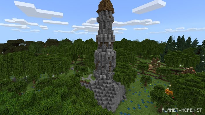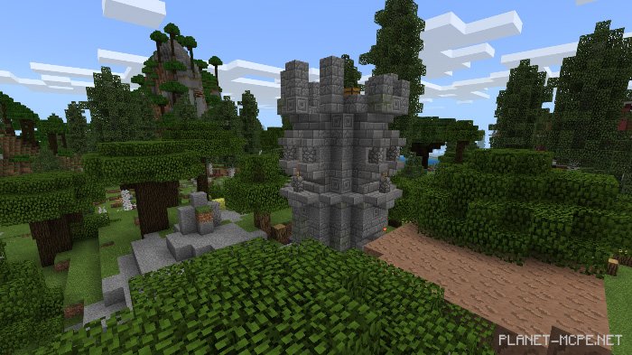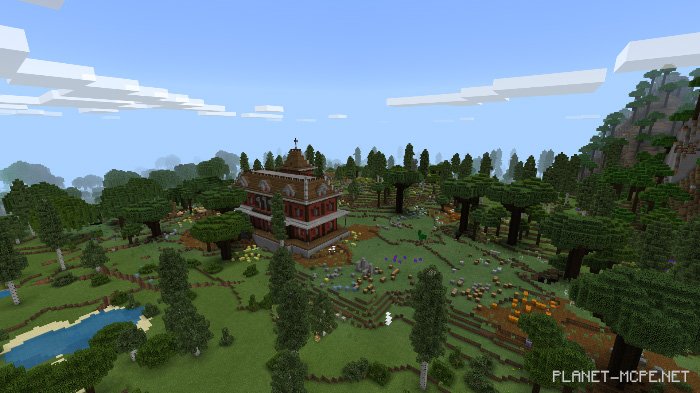 Map “The Wandering Woods” is a unique terrain composed of 2 billion large chunks, featuring custom trees, rocks, buildings, dungeons, and much more. It was developed in Java Edition using the Open Terrain Generator along with a program created by the map’s author. After completion, this map was transferred to Minecraft Bedrock.