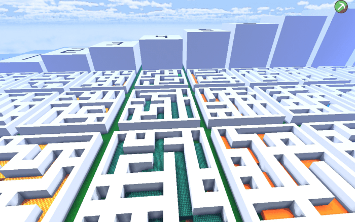 Navigate through 10 levels of a three-dimensional maze on the map titled “Three-Dimensional Labyrinth” in Minecraft! Each level presents greater challenges than the last, culminating in an escape from the most intricate and confusing labyrinth!