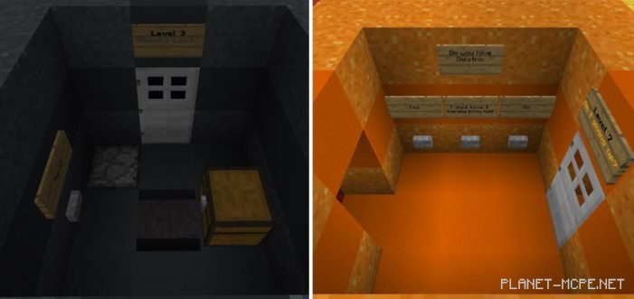 The puzzle map “Unthinkable Minecraft” features a variety of challenges designed to test your problem-solving skills within the Minecraft PE universe. Each level places you in a room no larger than 9 blocks. There is only one exit directly in front of you, but the door is locked; you’ll need to solve the puzzle in MCPE to unlock it!