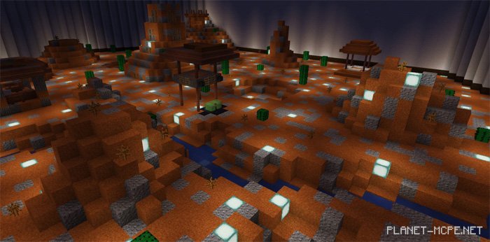The medium-sized map “Volcanic Desert KitPvP” is an excellent choice for large groups of players in PvP within Minecraft Pocket Edition. It features 10 different kits to choose from, allowing players to customize their gameplay experience. This map for MCPE is fantastic as it enables you to enhance your combat skills while having fun with friends!