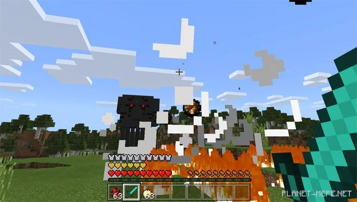 As you approach, it will begin firing fireballs from its mouth. Each fireball inflicts 18 damage points and causes an explosion in MCPE.