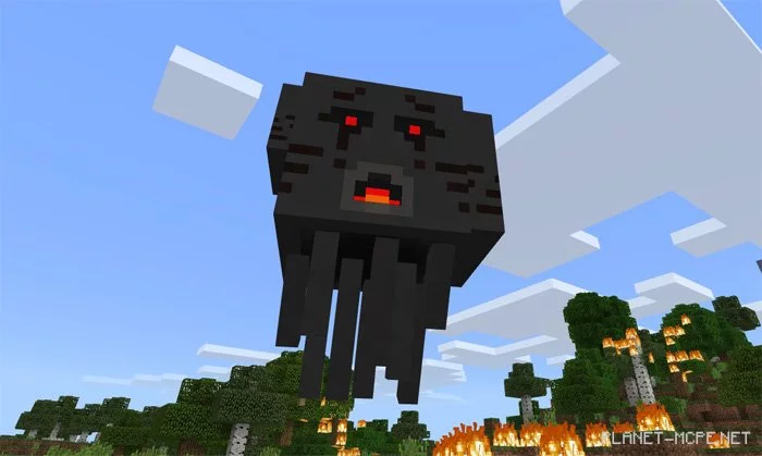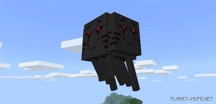 The Three-Headed Ghast replaces the regular ghast in the world of Minecraft PE, spawning primarily in the Nether. Additionally, you can use ghast spawn eggs to generate them in the Overworld.