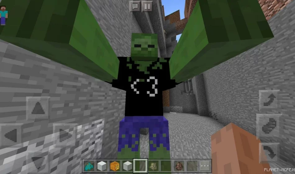 The zombie mutant introduced by the mod “AA12 Mutant Zombie (Zombie Mutant)” is essentially an enhanced version of the standard zombie in Minecraft PE, featuring a skin pack from the well-known MCPE YTer AA12YT. This YouTuber’s mutant has a significantly larger body, which improves its combat abilities, and it also moves faster than a regular zombie. Health: 75 hearts