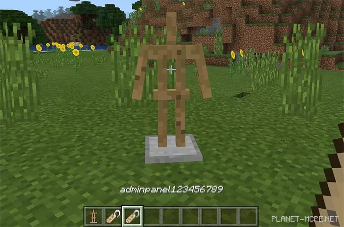 First, you need to identify yourself as an administrator to access the panel in Minecraft Bedrock. For this, you will require a name tag with adminpanel123456789. Create it using an anvil, then click on the armor stand with this tag.