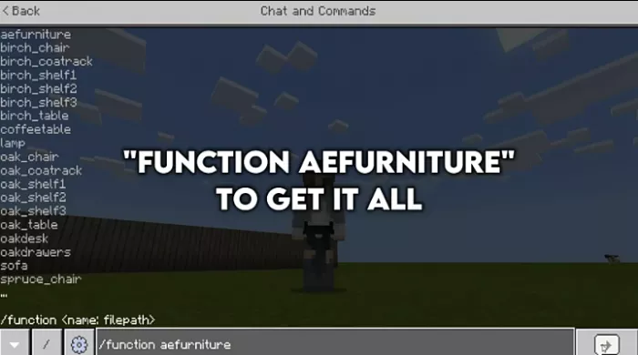 It’s important to note that the AE Furniture mod (AEfurniture) was not designed for use in Minecraft Pocket Edition survival mode. All items can be obtained by entering console commands. By the way, here are the commands for MCBE.