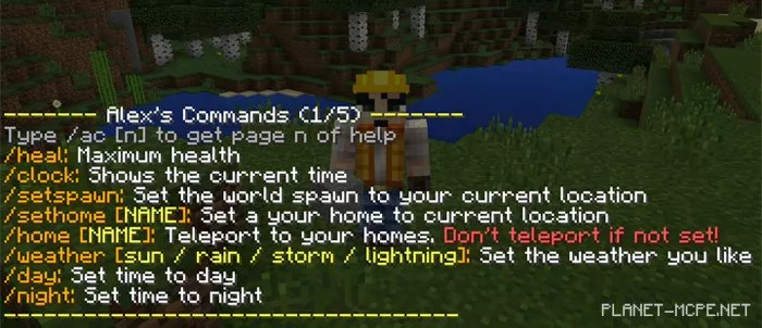 Mod “Alex’s Commands” is a modification that introduces a collection of essential commands to Minecraft Pocket Edition, which can be useful at any time.