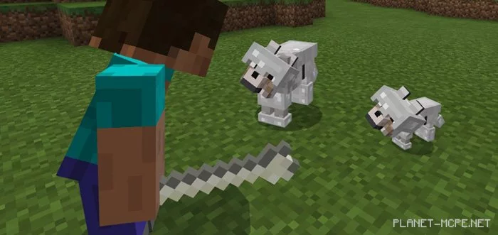 Armored wolves replace the standard wolves in the Minecraft PE world. If you manage to find one in the wild, you can tame it by giving it bones.