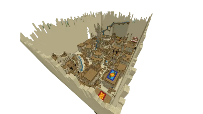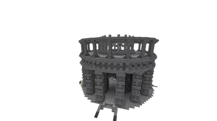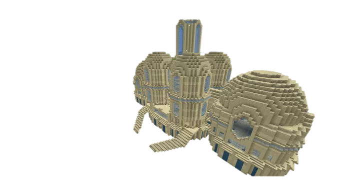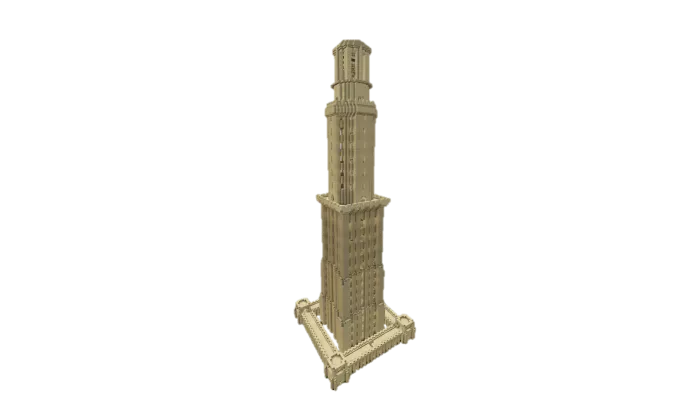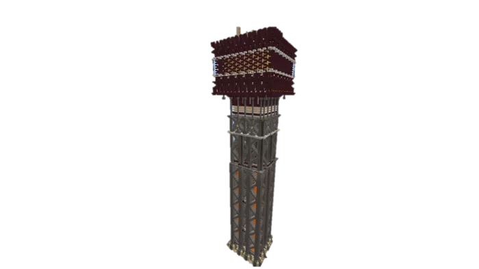 This is not the entire tower. The upper section had to be trimmed because it was not possible to resize the tower to the desired dimensions in Minecraft.