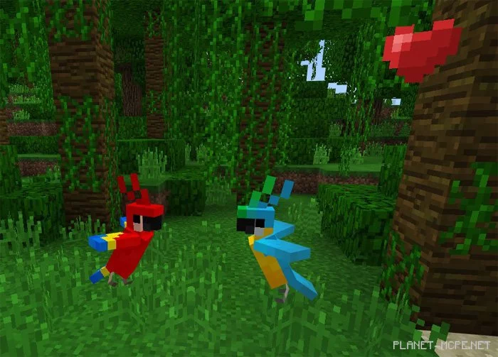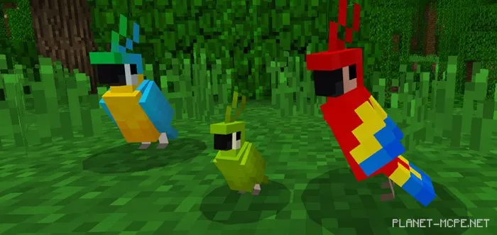 As a result, a charming baby parrot will appear in the world of MCPE. This is the only way to find and obtain a baby parrot in Minecraft PE. You cannot influence the color of the baby parrot.