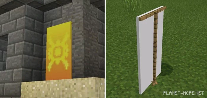 Banners are an official feature for Java Edition and have also been introduced for Minecraft PE 1.2. However, if you haven’t upgraded to the latest version of the game and have no plans to do so, the mod “Banner (Flags)” will be a great alternative for you, as it brings some flag functionalities to the Minecraft PE world, albeit in a limited capacity since it is just a concept. If you have never encountered flags in MCPE, you will surely find it interesting to see what they are all about.