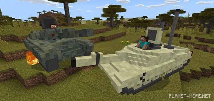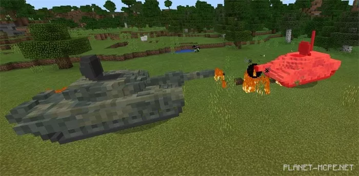 Players can maneuver the tanks and control their movement. The tanks will randomly target other enemies in the world of Minecraft PE with explosive projectiles, such as other battle tanks.