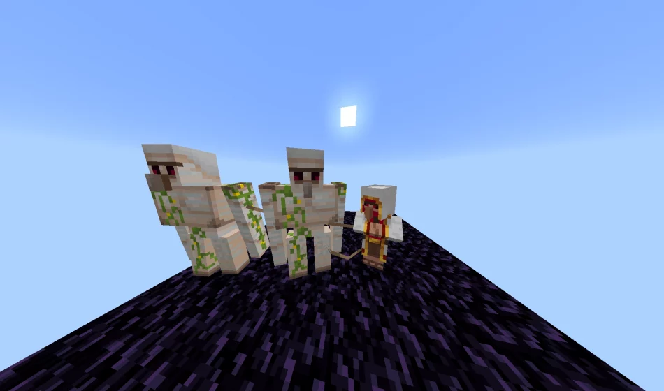 Why did the author choose iron golems among the vast array of mobs in Minecraft? Previously, encounters between the Wandering Trader and zombies always ended with the Trader’s demise, but now iron golems will protect the Trader and prevent zombies from causing him harm!