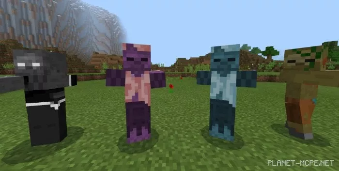 The mod «Biomobs (Biomes Mobs)» introduces 20 new creatures for you to battle in your survival worlds, featuring entirely new types of spiders, zombies, skeletons, and creepers. You can discover them in Jungles, Frozen Biomes, Mushroom Islands, and the Nether in Minecraft Bedrock!