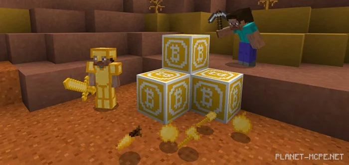 The easiest way to get bitcoin in Minecraft PE is to mine them. Since they replace gold ore, they won’t be too hard to find. However, you will need an iron pickaxe or better to successfully mine them.