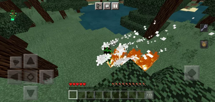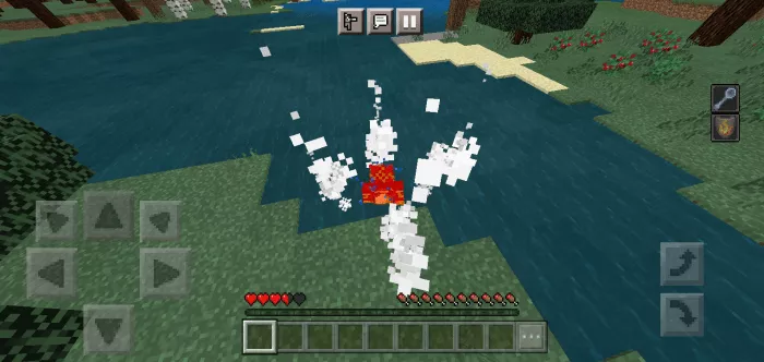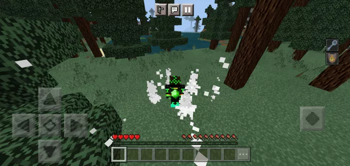The archive containing the mod includes two files for MCPE. One file is the full version of the mod, while the other is a lighter version, which means there will be fewer particles in MCPE. Enjoy your gaming!