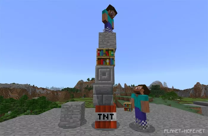 The mod «Block Entity» transforms the zombie villager into a block entity. This block entity behaves similarly to the mob it replaces, but it can also function as a more fluid building block in Minecraft PE. You can push it, resize it, and change its skin along with other attributes. It is actually more realistic than standard blocks, as it is affected by gravity, which most regular blocks are not.
