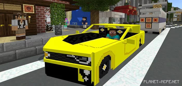 The mod “Camaro ZL1 (Chevrolet Camaro)” replaces the witch in Minecraft Pocket Edition with a luxurious sports car known as Chevrolet Camaro ZL1. This powerful vehicle can reach speeds of up to 181 miles per hour, but it moves much slower in MCPE. The car model is impressive, though the animation may feel slightly awkward. Regardless, this vehicle is an excellent choice for those looking to experience a taste of luxury within MCPE.