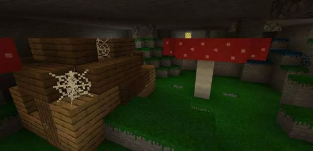 In the mossy caves, you might encounter enormous mushrooms and tiny formations.
