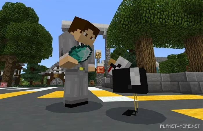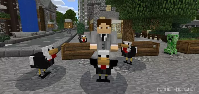 Bodyguard chickens are significantly larger than regular chickens. They will follow their owner closely and attack any nearby hostile entities that come your way. You can ride the chicken and control it using a diamond sword, iron sword, gold sword, diamond axe, iron axe, gold axe, or a bow. No more creeping creatures! Your Bodyguard Chicken will swiftly come to your aid and eliminate any potential threats!