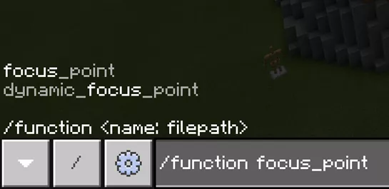 Before adding a dynamic focus point, you must stand behind the object (mob or player) that will be focused on, and then enter the command “/function dynamic_focus_point”.