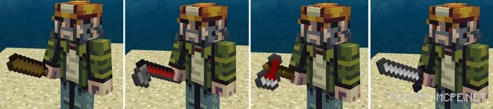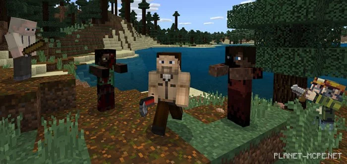 The mod «Crafting Dead PE (The Walking Dead)» is an adaptation of the mod for Java Edition known as Crafting Dead. RedstoneLover was inspired to create it after watching Pat and Jen play with this mod on Java. This mod for Minecraft PE features several elements that fans of “The Walking Dead,” a highly popular TV series about survivors in a zombie apocalypse, would easily recognize. Some of the new features include various types of zombies, such as walkers and runners, along with new weapons in MCPE.