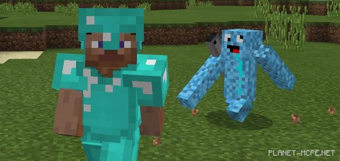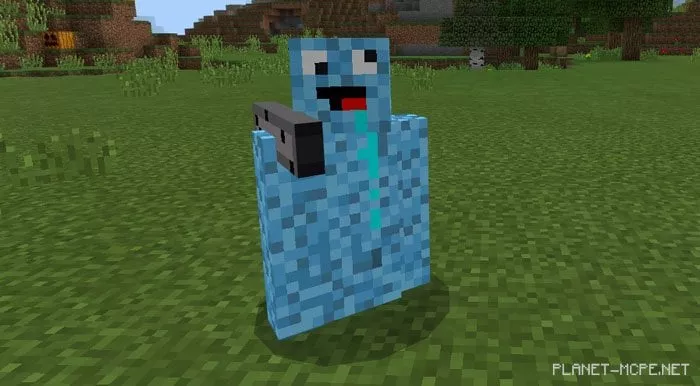 The mod «Derpy Golem» introduces a clumsy golem to Minecraft Pocket Edition, resembling a cookie monster. This awkward golem is quite dangerous in MCPE, as it will chase anyone nearby in an attempt to eliminate them. If it fails to reach its target, it will shoot them with a fire cannon mounted on its right shoulder.