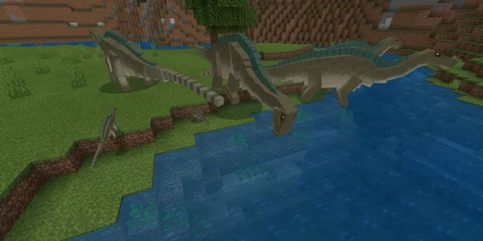 This modification, Early Cretaceous Period (Dinosaurs of Kem Kem), introduces around ten new creatures to Minecraft PE. The creator plans to add even more diverse beings in future updates. Here’s what the mod includes: