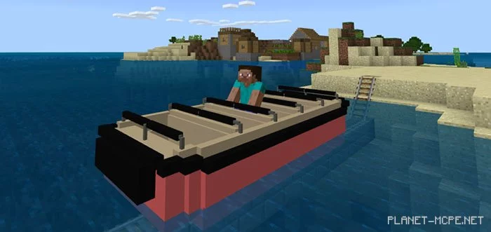 The minecart is replaced with an amazing travel boat. It behaves similarly to a standard minecart, but is specifically designed for water, taking the form of a boat. You can utilize it for your own creations in Minecraft PE.