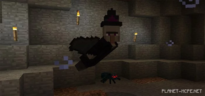 There are four new types of witches, each spawning in different biomes. They are equally powerful in Minecraft PE, so it is advisable to engage them only when necessary or if you have the appropriate gear to fight them.