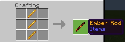 To craft the ember rod, you need to combine three fire rods in Minecraft, as illustrated in the image below: