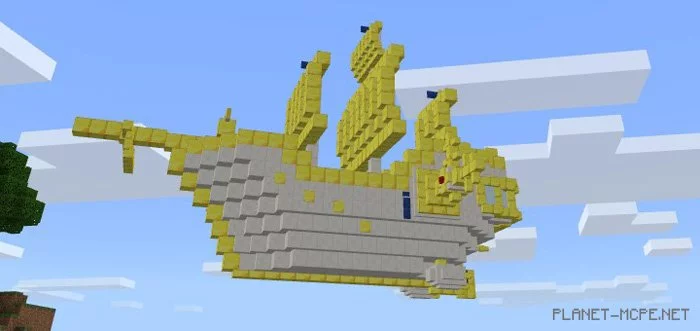 The ship Wing of Wish from the mod “Flying Ship” is a medium-sized vessel that takes to the skies upon activation in the world of Minecraft Pocket Edition. You can utilize it either as an ornament or as your personal mode of transportation. The well-crafted 3D model of the ship is designed using textures from MCPE blocks. This is undoubtedly a delightful 3D model, primarily composed of blocks from Minecraft PE.