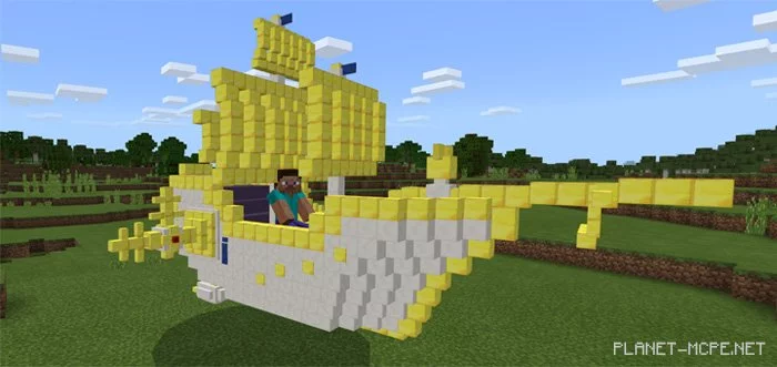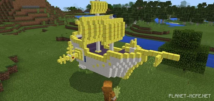This is quite an unusual mod for MCPE, which introduces a flying ship into the game. It won’t start moving unless you place it in an open area.