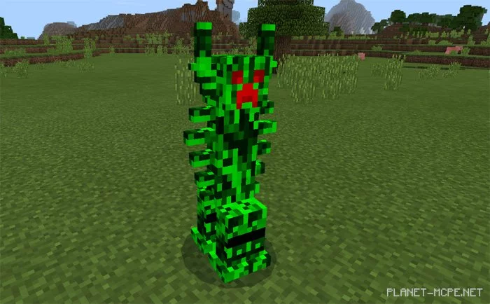 The standard creeper is replaced by an even creepier version known in the realm of Minecraft PE as the quirky creeper. It moves much faster than its predecessor and causes a more powerful explosion.